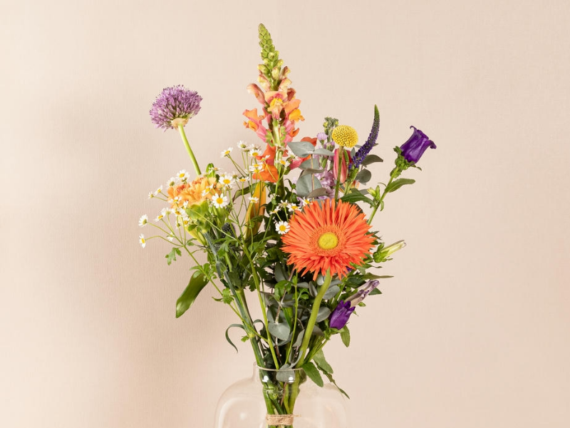 Fris plukboeket met vrolijke gekleurde bloemen